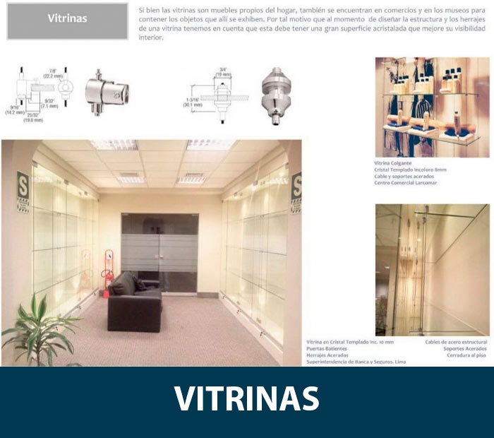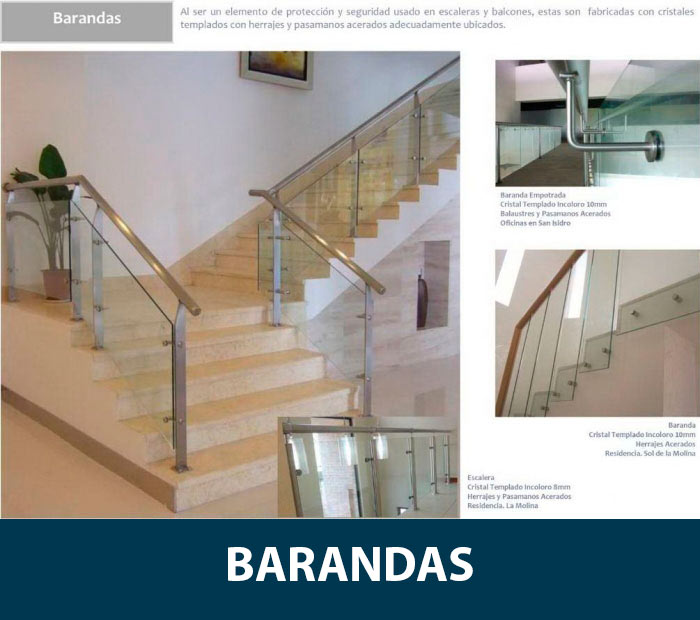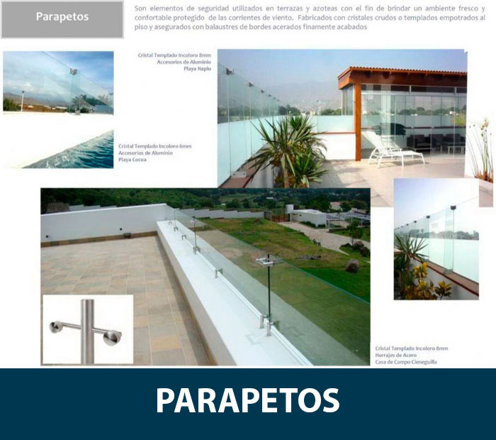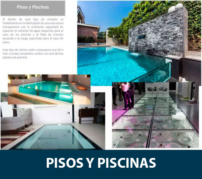 Barandas, parapetos, pisos, piscinas y vitrinas